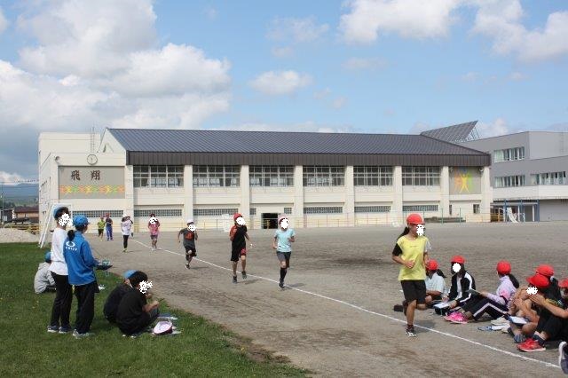 高学年はグラウンドを8周しました。自分が何週目かわからなくならないように、友達が数えてくれました。