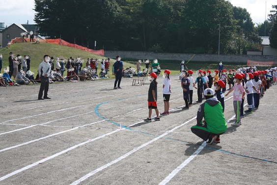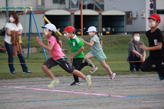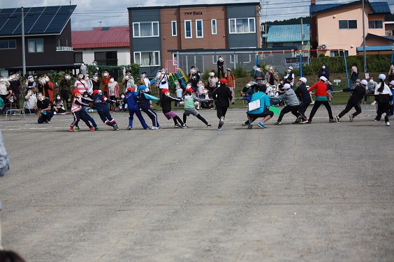 ラジオ体操、徒競走(全学年)、考案走(1,2年)、団体種目(綱引き、リレー)など、子どもたちの躍動する姿が見られました。